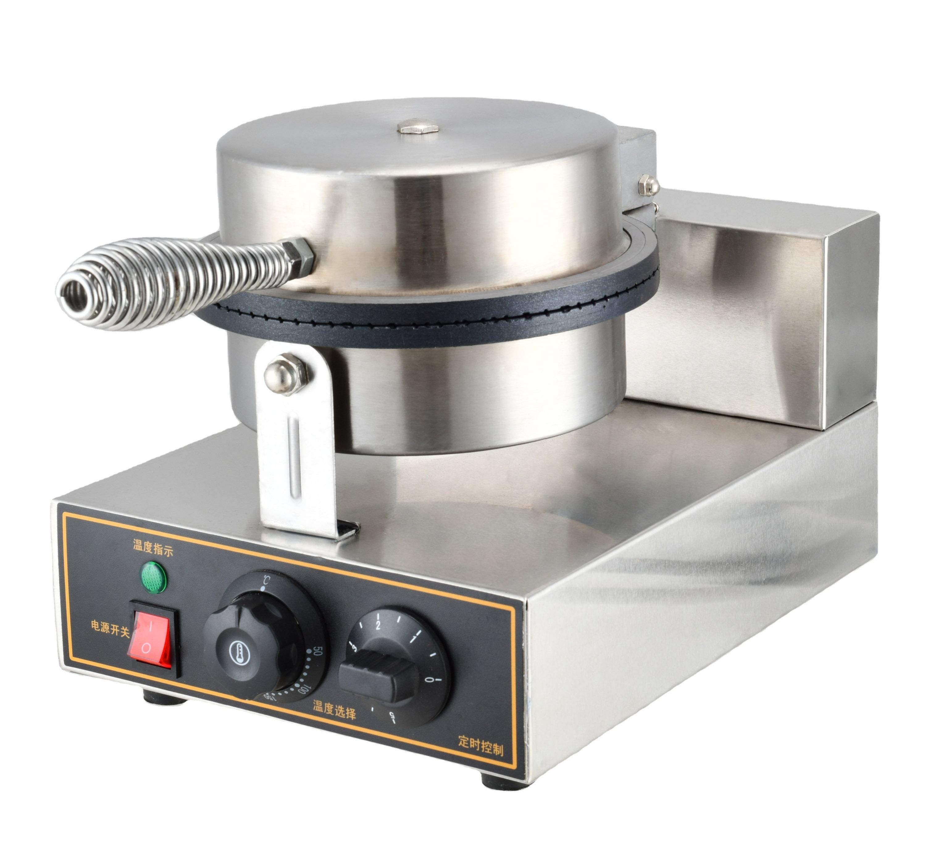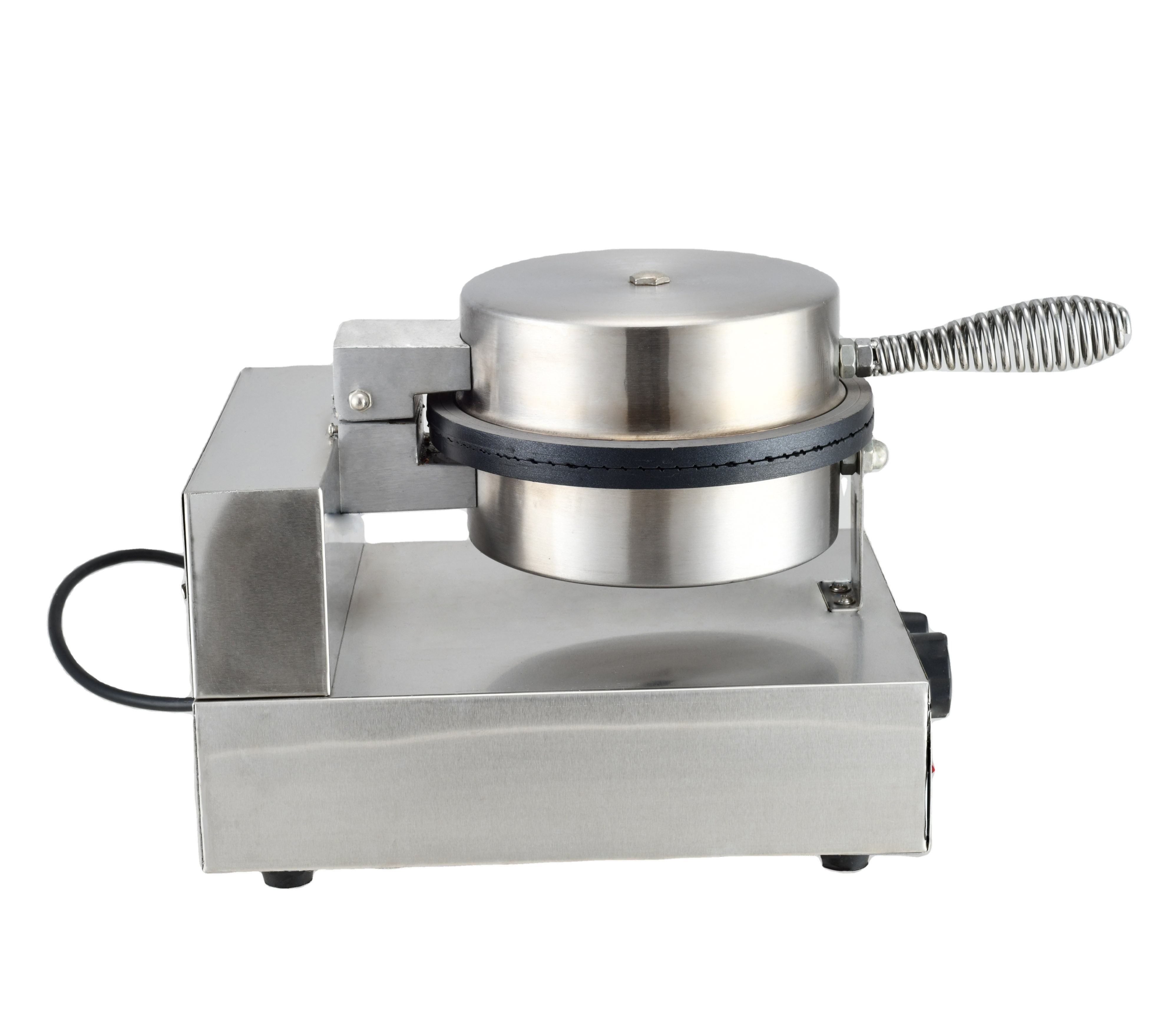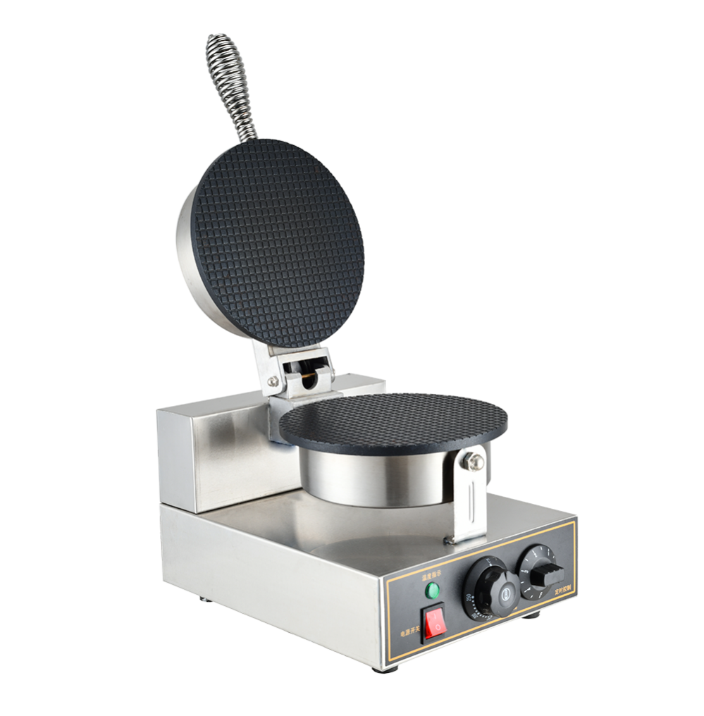 Equipped with a powerful heating element and non-stick cooking plates, the machine heats evenly to produce uniformly cooked cones without sticking. Its user-friendly controls allow precise temperature and timing adjustments, ensuring consistent results for every batch. The stainless-steel construction provides durability, hygiene, and easy cleaning, making it ideal for commercial use.