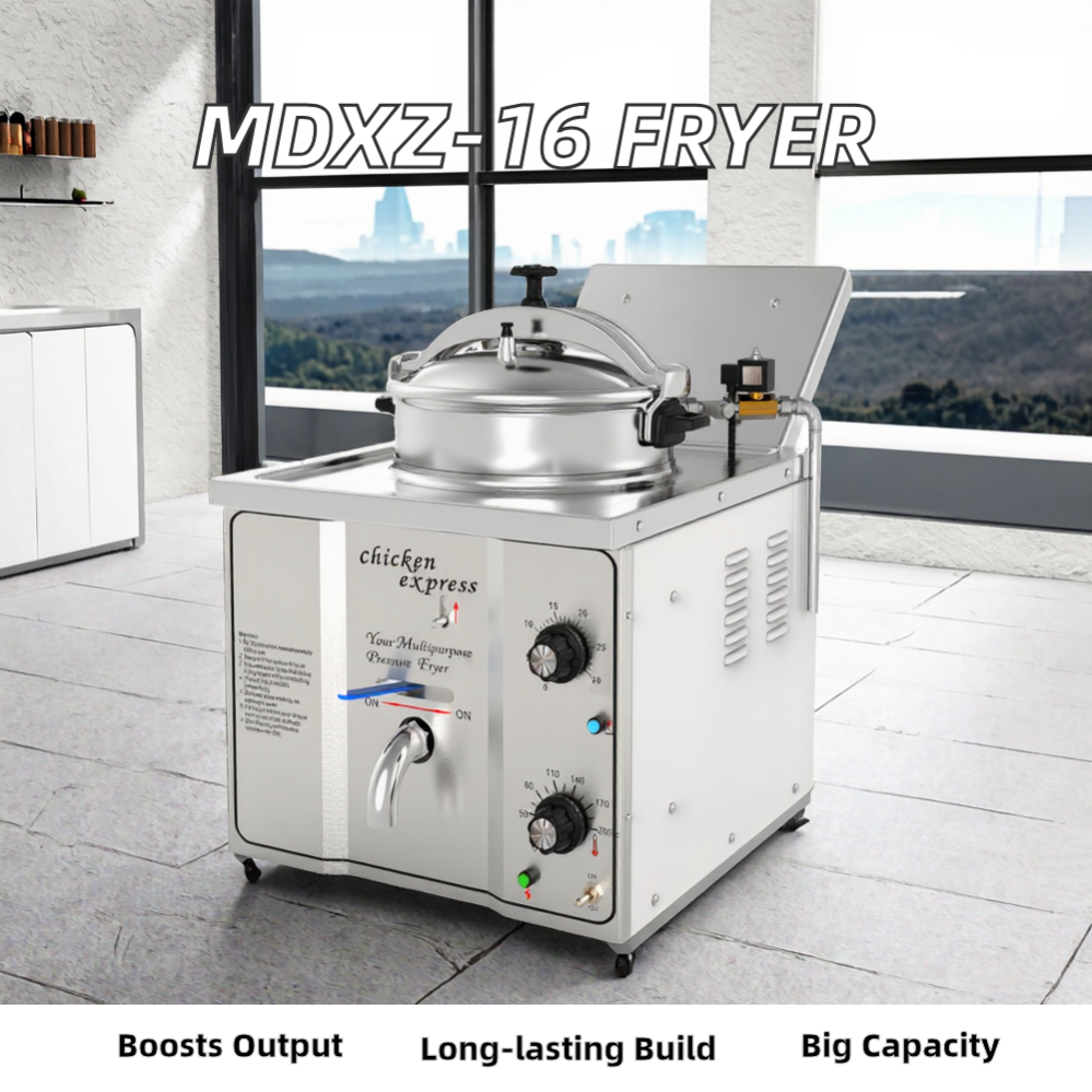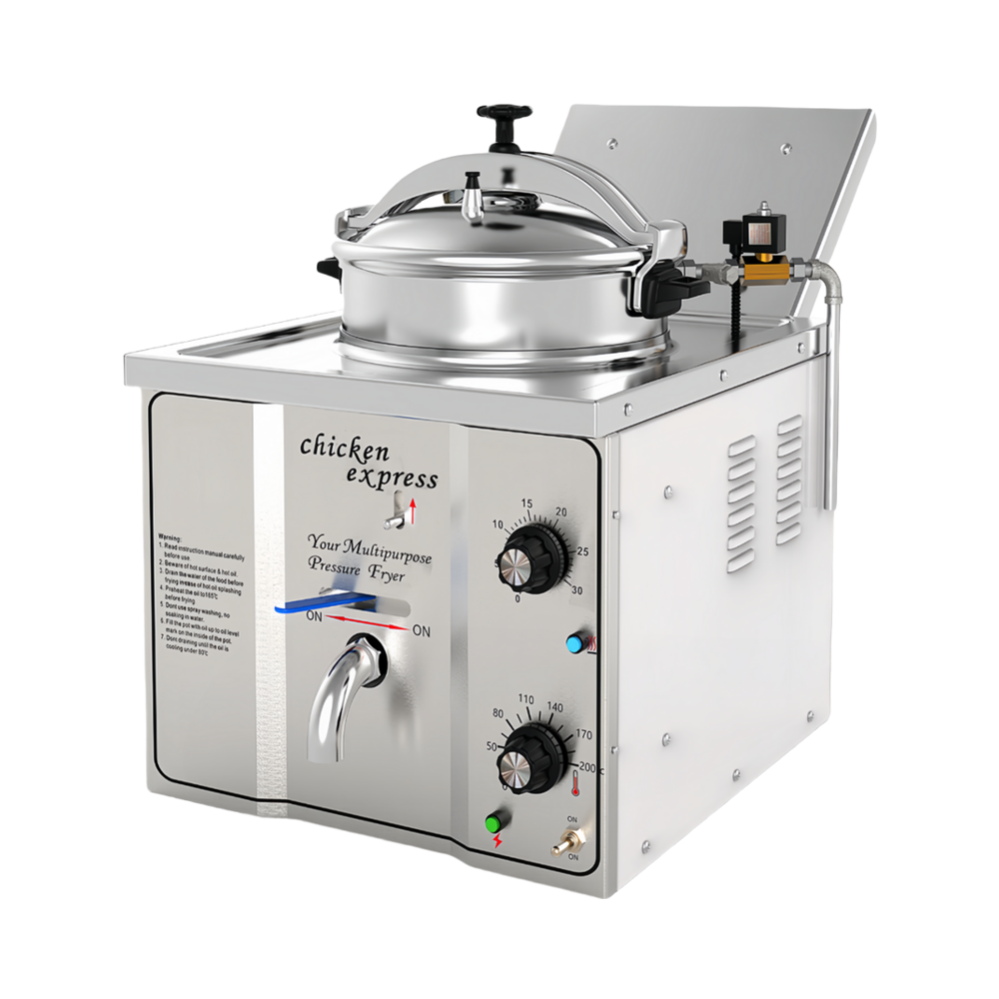 The Electric Pressure Fryer is a high-performance commercial frying appliance designed to deliver fast, crispy, and juicy results while using less oil and cooking time. Perfect for restaurants, fast-food kitchens, catering services, and fried-chicken businesses, this fryer combines controlled pressure cooking with precise electric heating to ensure consistently delicious, golden-brown food every time.