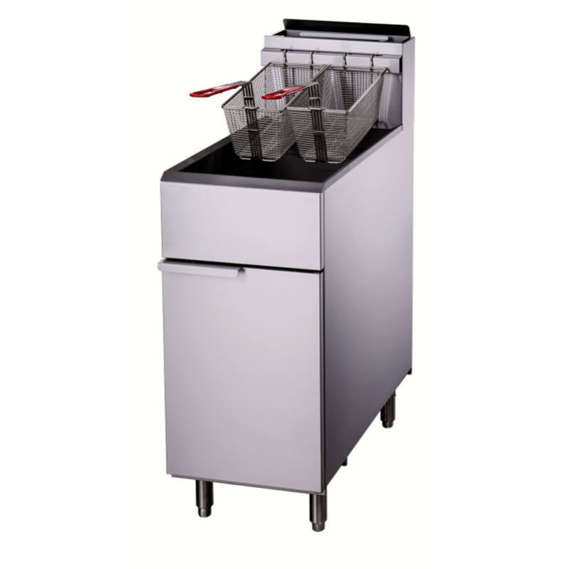 The fryer features a large-capacity oil tank for bulk frying and includes a removable basket for safe and convenient handling. Precise temperature control ensures optimal frying conditions, while the drip tray helps maintain a clean and hygienic workspace. Designed for efficiency and safety, the Gas Fryer is an essential tool for any busy commercial kitchen.