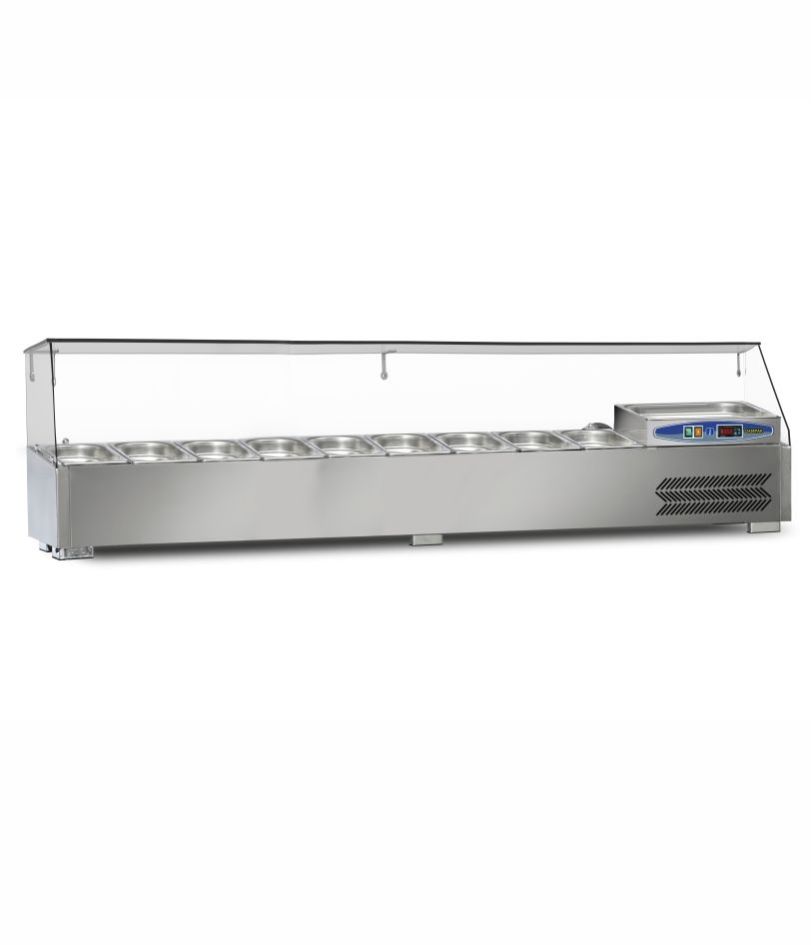 Built with a durable stainless-steel structure, the salad bar ensures long-lasting performance while maintaining superior hygiene standards. Its spacious top wells offer ample room for multiple GN pans, allowing you to present a wide variety of items at once. The integrated cooling system keeps ingredients at safe, consistent temperatures throughout service.