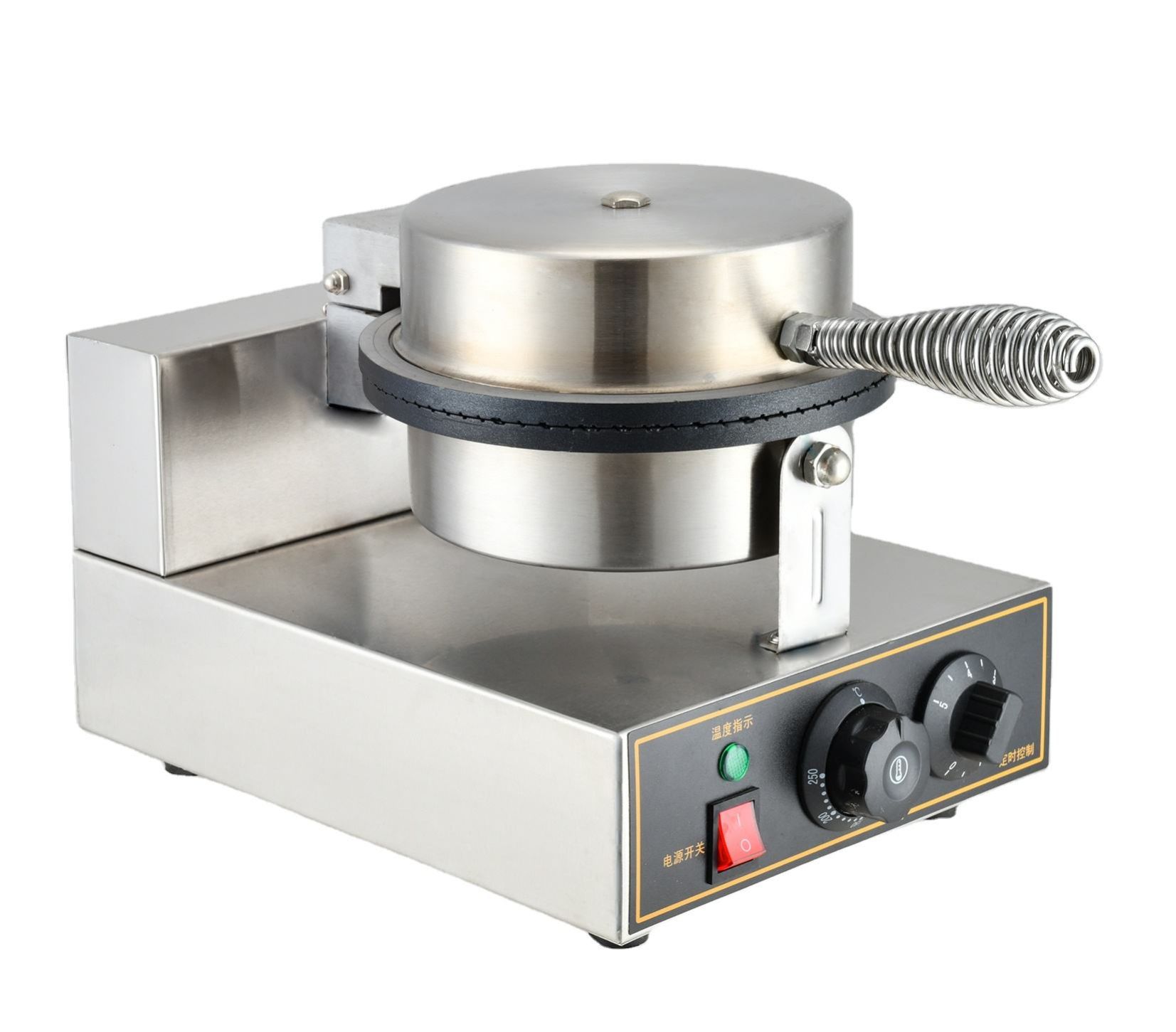 Equipped with a powerful heating element and non-stick cooking plates, the machine heats evenly to produce uniformly cooked cones without sticking. Its user-friendly controls allow precise temperature and timing adjustments, ensuring consistent results for every batch. The stainless-steel construction provides durability, hygiene, and easy cleaning, making it ideal for commercial use.