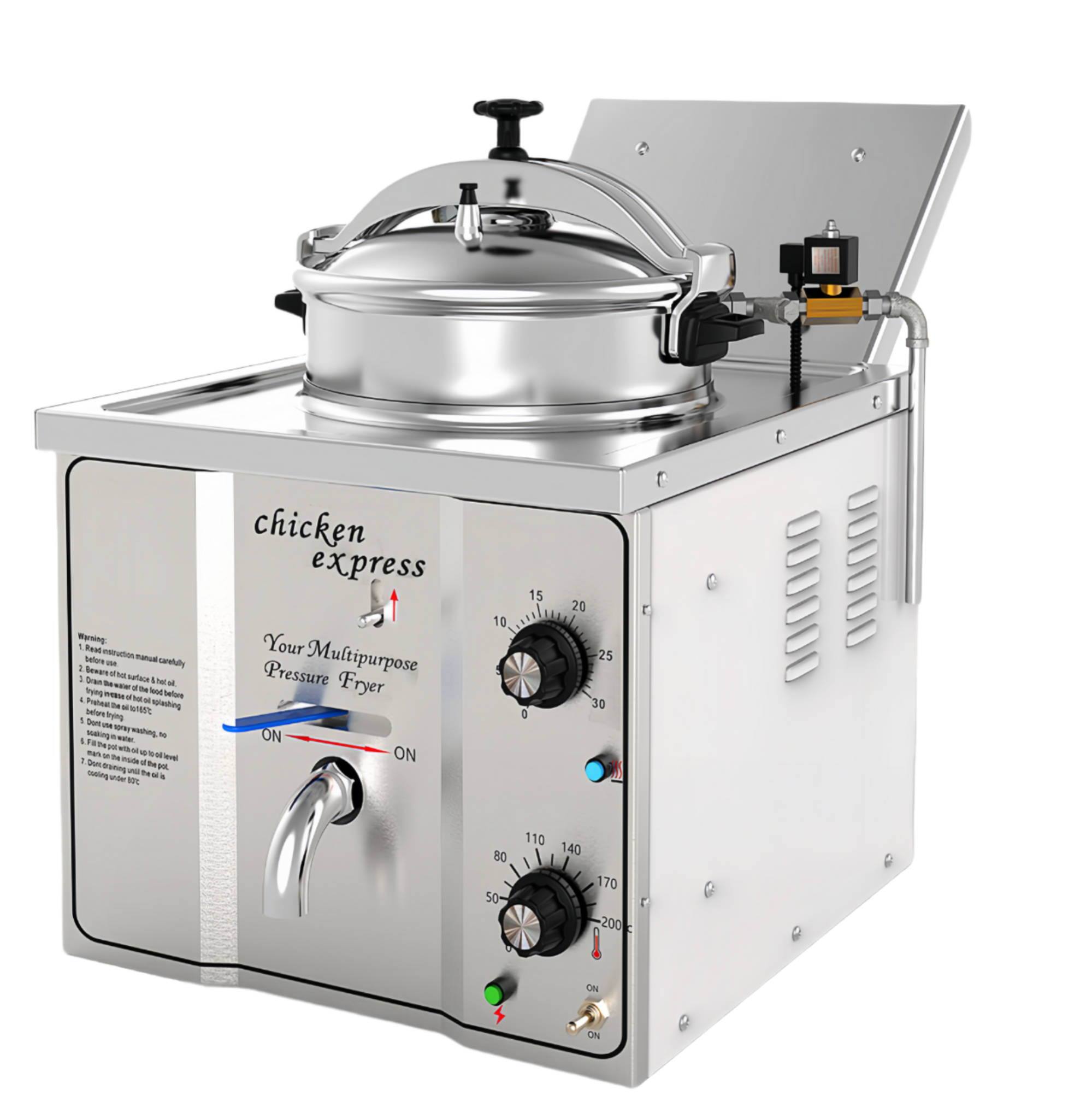 The Electric Pressure Fryer is a high-performance commercial frying appliance designed to deliver fast, crispy, and juicy results while using less oil and cooking time. Perfect for restaurants, fast-food kitchens, catering services, and fried-chicken businesses, this fryer combines controlled pressure cooking with precise electric heating to ensure consistently delicious, golden-brown food every time.